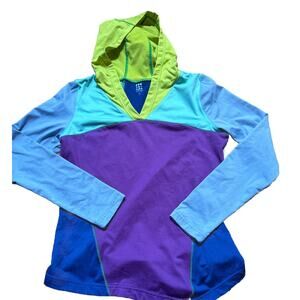 Title Nine hoodie sweatshirt Small colorblock performance colorful blue