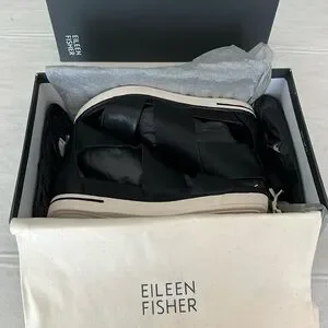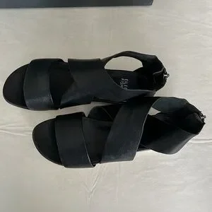 Eileen Fisher Black Sport Footbed Sneaker Sandal. Comes with original box and dust bag. In soft tumbled leather. Easy to put on with zipper in back. Very comfortable. Great for every day or vacation. Only worn once.