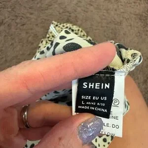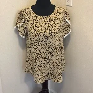 SHEIN Dalmatian Top Blouse Tulip Sleeve Puff Sleeve Animal Print L Large
