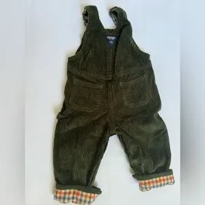 ✨green corduroy overalls with plaid lining (not fully lined) so cute for fall