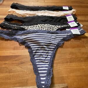 Lace at the waistband and legs brings a pretty touch to Jenni's comfy thong.