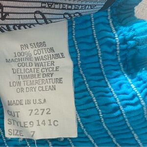 Pre-owned. Zipper functions fine, and I don’t see any rips or tears. Note that there is a snagged thread in the stretchy area of the back (see photo with circle) and some of the interior fabric inside the zipper is fraying a bit due to age. Sold as-is due to vintage condition.