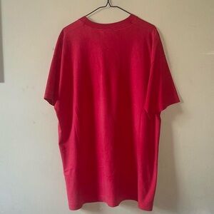 7.5/10 condition, a few holes throughout and some marks, wear on graphic, single stitch all around