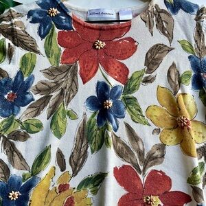 Alfred Dunner Vintage Floral Short Sleeve Knit Top Size Petite Large