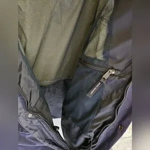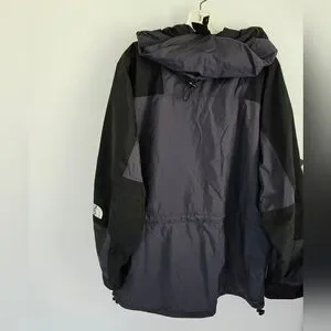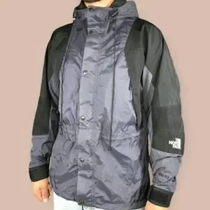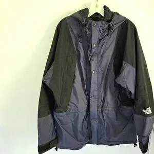 A blue and black Gor-Tex Mountain jacket is by The North Face