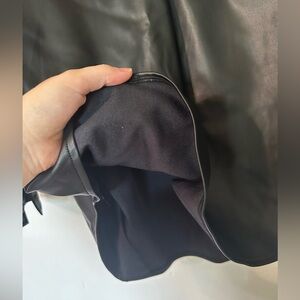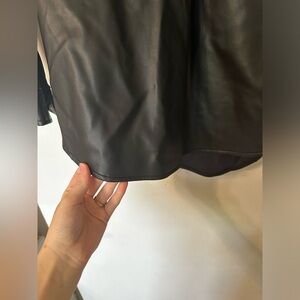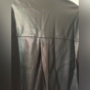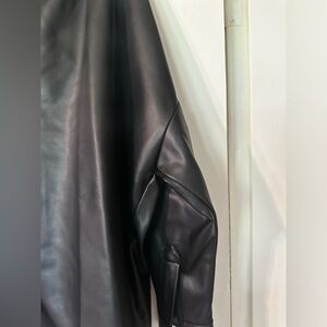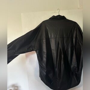 I absolutely adore this top but it’s been sitting in my closet for about 3 years and has never been worn. High fashion top. I little wrinkled from sitting in my closet for so long. Soft lining inside. Faux leather so you can put it in the washing machine. Would look gorgeous with a pair of black jeans. Perfect for fall and winter. In great condition as it’s never been worn. Size small, oversized. Would fit a medium as well. Open to offers!