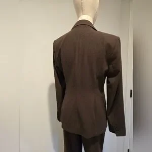 excellent used condition. chocolate color in clasic tailored cut. pants are very comfortable, and both pieces can be styled together or separate!! jacket and pants are both size 4