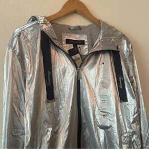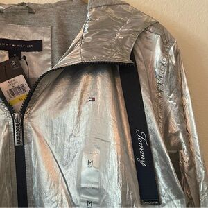 Tommy Hilfiger Silver Windbreaker Hooded Jacket size M.