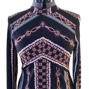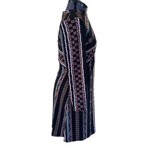 Free People Stella Graphic Long Sleeve Mini Dress M Zip Back Geometric MockNeck
