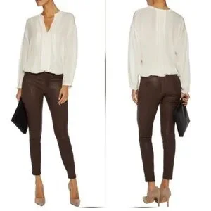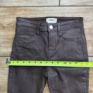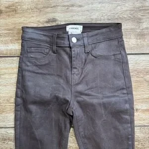 L’agence High Rise Skinny Brown Coated Pants Size 24 Shimmer Denim Stretch Jeans