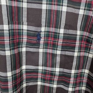 Elevate your wardrobe with this Polo Ralph Lauren Plaid Button Front Shirt. The shirt features a collared neckline with a button-down closure, long sleeves with standard cuffs, and an embroidered Polo logo. The shirt is made of cotton knit fabric, which makes it comfortable and machine washable. This shirt is perfect for any occasion, whether it's for travel, casual wear, or business attire. The brown plaid pattern adds a classic touch to the shirt, making it a versatile piece that can be worn in autumn, fall, or spring. The shirt is available in size XL and is a regular fit. Don't miss the chance to add this Polo Ralph Lauren McMeel shirt to your collection.