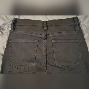 Black denim. High rise toothpick style. Skinny jeans. Size 28. Measurements and fabric content listed above in pictures.