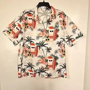 tropical •beachy• Santa in Hawaii • Merry Christmas• aloha• flamingos•pineapple•
