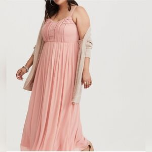 Torrid Blush Pleat & Eyelet Chiffon Maxi Dress 1X