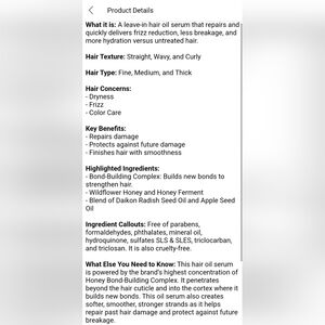 This unique formula doubles as finisher. Reapply as needed on days hair wants an extra touch of smoothness, frizz reduction, or softness.