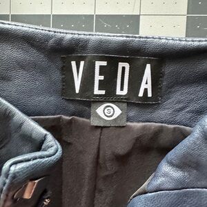Veda pleated leather pants in excellent condition. New. Without tags. Navy blue.