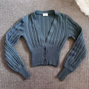 Aritzia Plunge Front Cropped Cardigan XXS wilfred blue