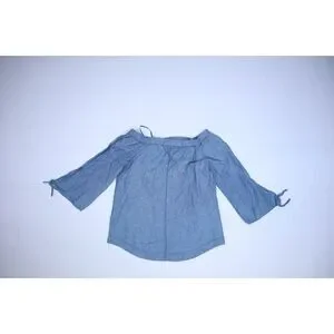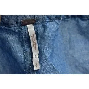 Free People Blue Cotton Linen Blend Show Some Shoulder Chambray Top Womens S
