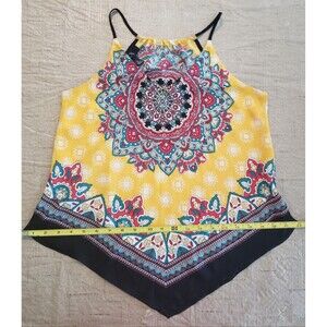 BCX V-Hem Scarf Tank Small Yellow Multi Printed Allover Mandala Sleeveless