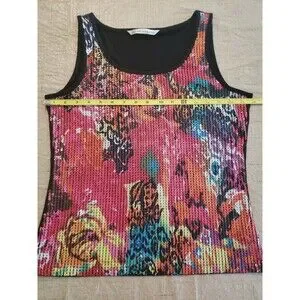 Peter Nygard Women's Sz Small Tank Top Floral Sequin Bold Neon Pink Stretch