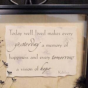 This is a cute wall decor piece done as a 3- D Shadow box - Quote "Today well lived makes every yesterday a memory of happiness and every tomorrow a vision of hope."