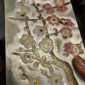 Vintage Japanese Cloisonne cherry blossom tray, by Bonne Couleur.