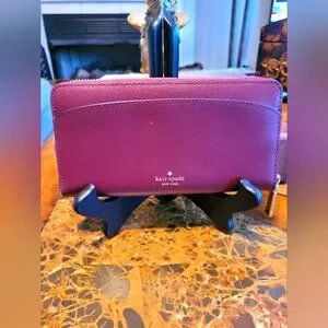 NWOT Kate Spade long zippy wallet in burgundy saffiano leather is just stunning and stylish. New Style and she's classy. Please see all photos for more details and description of the wallet. Thanks