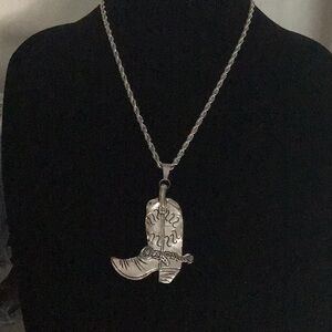 NEW 316 stainless steel rope chain plus metal boot pendant. Chain is 24” approx.