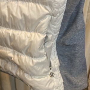 White puffer with grey, marshmallow soft, good condition size 6