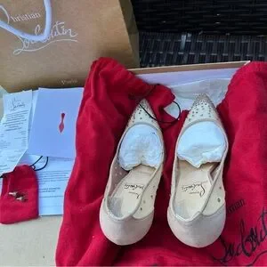 Only wore them for my wedding, sole protector, some missing crystals very unnoticeable, comes with dust bags, extra heel protectors, proof of authenticity (invoice from Atlanta louboutin store) box and everything you see in the picture