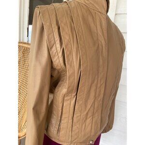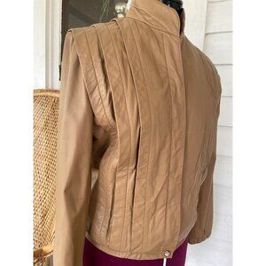 Vintage 1980s Sara International Womens Leather Tan Jacket Size 8