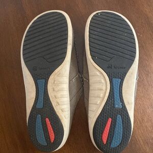Men’s Spenco slide with orthotic support. Elastic on sides is split (see pictures). Taupe color, size 13