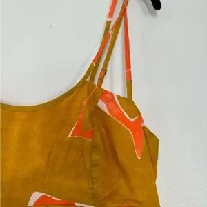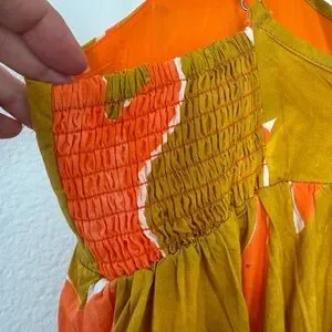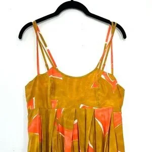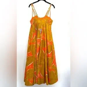 NWT Anthropologie Babydoll Midi Dress Coral Orange Lime Brown Size S Small