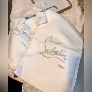 Comes with dust bag for each shoe as well as a replacement pair of heel plugs