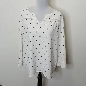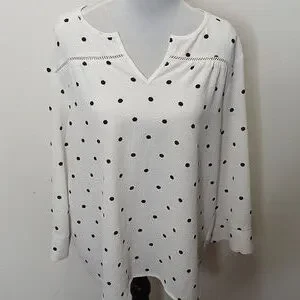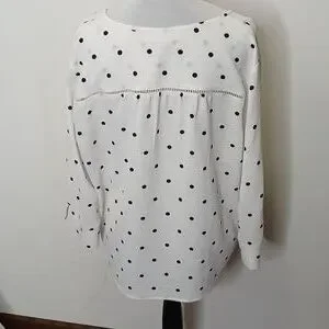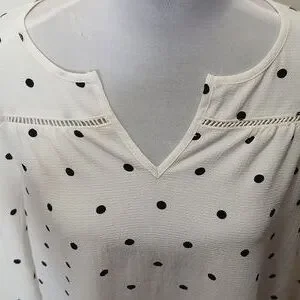 Fever women's slit collar polka dot quarter sleeve blouse size large