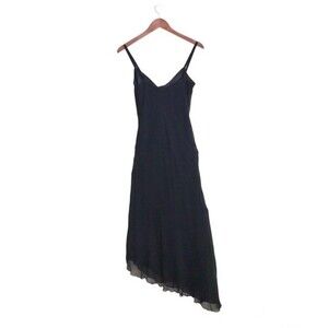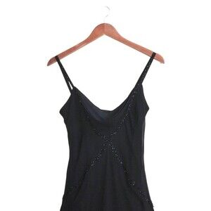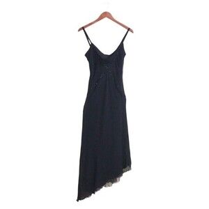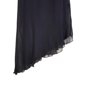 VTG 90's Y2K Black Beaded Silk Sleeveless Mesh Asymmetrical Cocktail Maxi Dress