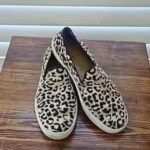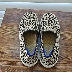 True to size Rothy's original slip on sneaker in size 8. Another fun animal print that has been stored in shoe boxes. From non smoking home. GUC. Shoes & insoles will be freshly washed.
