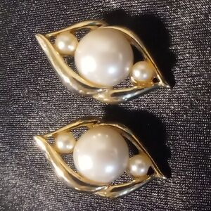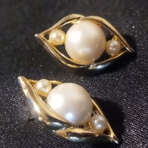 Vintage new old stock gold plated faux pearl pierced. Woolworths tags
