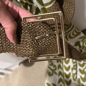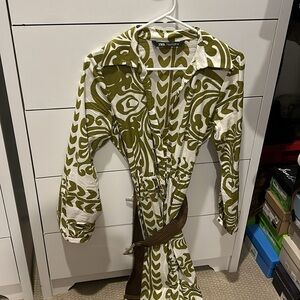 ZARA size medium green and white belted print button up dress