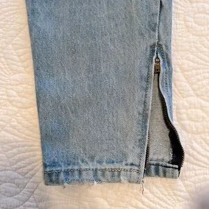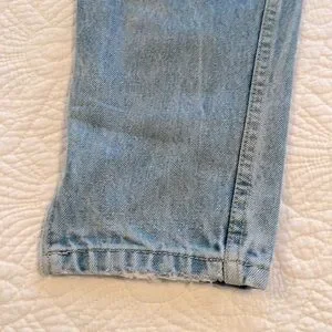 Awesome 80”s or 90’s jeans, great shape, fabric shows wear in some places, soft denim. No staines or tears. waist: 13 1/2; Hip to Hip: 18 in.; Tapered leg, zippered at ankle: 6 in. Inseam: 26 in.