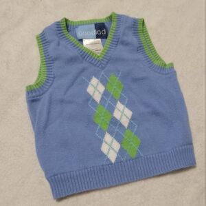 5 for $10 Good Lad Blue Green & White 100% Cotton Knit Sweater Vest 6-9M