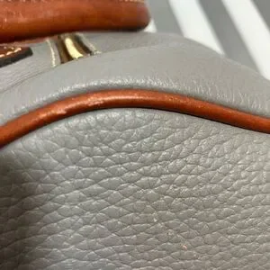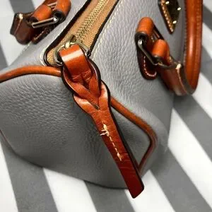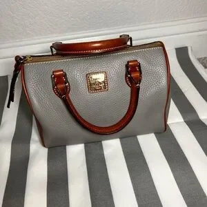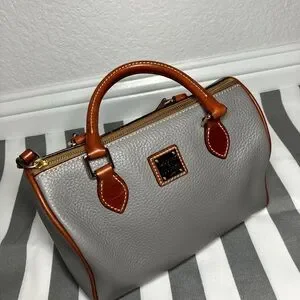 Authentic Dooney & Bourke elephant gray pebbled leather barrel (Trudy) satchel