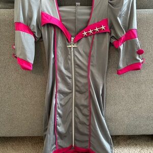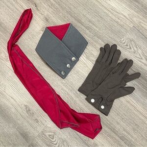 This costume was worn once and not washed. It is missing two buttons (one from each sleeve). It comes with accessories shown (hat, scarf and gloves). The tag says it’s a size XS/S. Smoke free home. Ships fast!