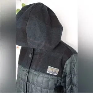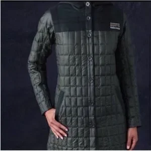 Patagonia Rare Recycled Down Hooded Coat Carbon Green Medium