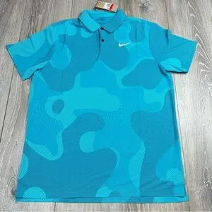 Men’s Nike Dri-Fit ADV Tour Camo DR5312-381 Teal Polo Golf Shirt Size Large