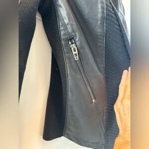 Blank NYC black leather zipper ribbed front detail jacket luxury fall casual XS