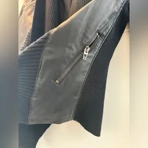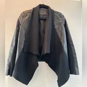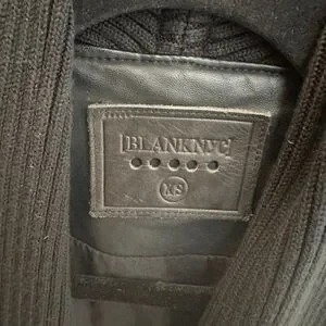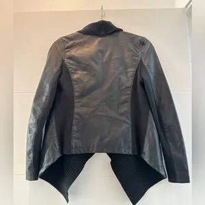 Blank NYC Black Leather Jacket Ribbed Drape Front Moto Lightweight | Size XS