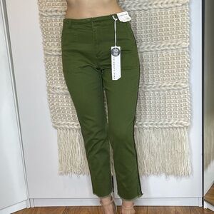 Celebrity Pink Olive Green High Rise Trousers Cropped Raw Hem Size 25