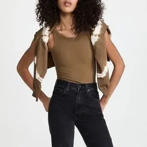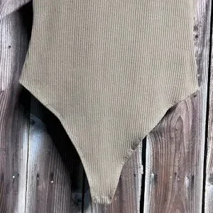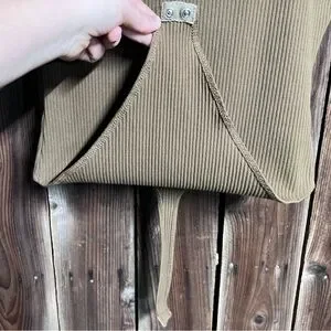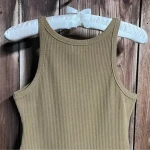 Good American Thong Tank Bodysuit Ribbed Khaki Forrest Green Brown High Leg Sz L
