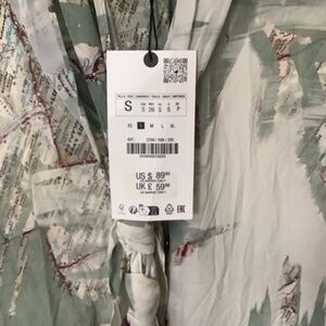 Zara ZW Collection Printed Tied Shirt Blouse Green Burgundy Mulicolored Small